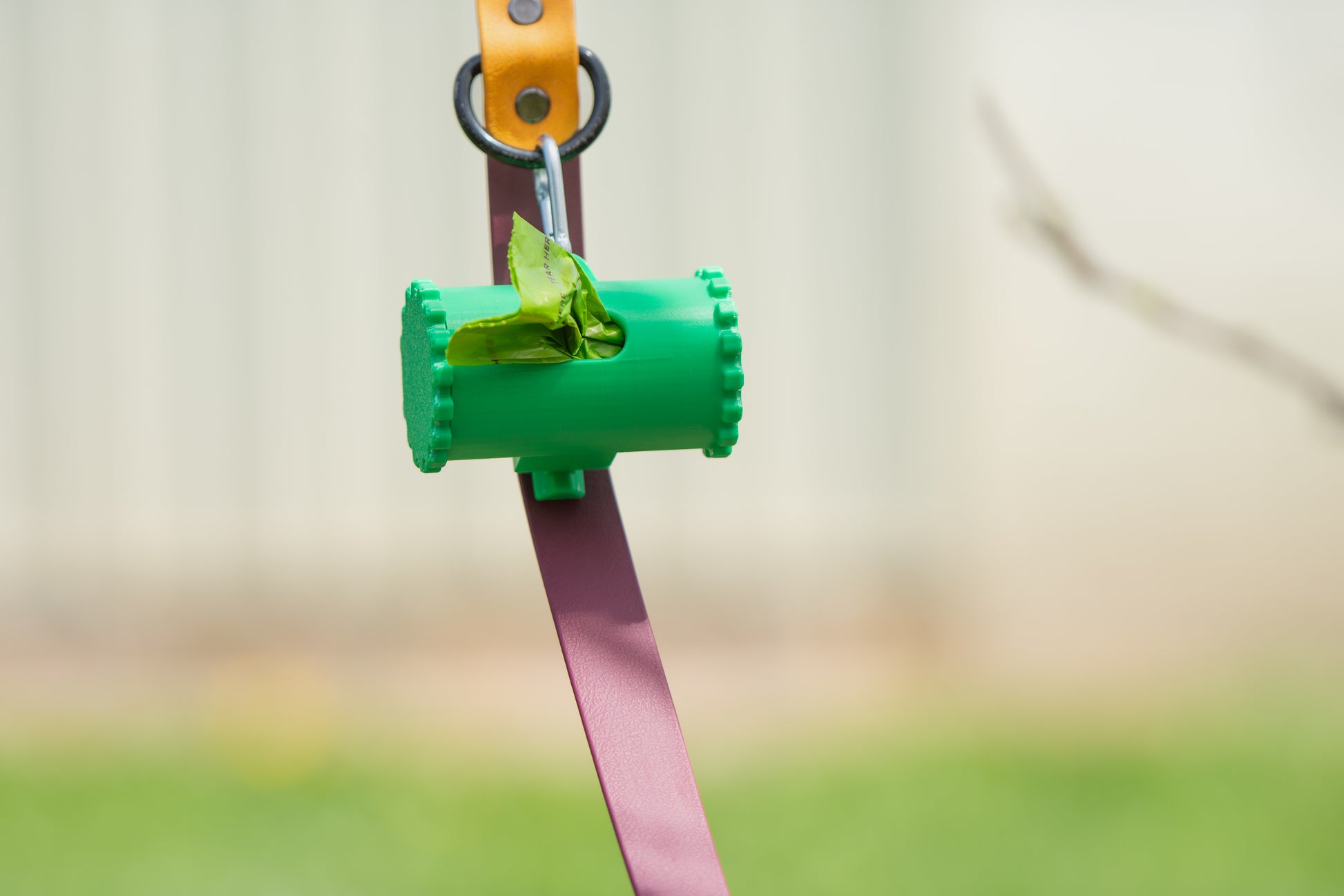 This "Gear" Poop Bag Holder provides a simple storage solution for those pesky poop bags. Our poop bad holder attaches to our Bucket Holders for both doors and vents. They can also be used alone with our no chew door fasteners providing a versatility.
